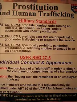 - ↑ Jon Rabiroff; Hwang Hae-Rym (9 de setembro de 2009). «'Juicy bars' said to be havens for prostitution aimed at U.S. military». Stars and Stripes. Consultado em 13 de novembro de 2017. Cópia arquivada em 9 de setembro de 2009