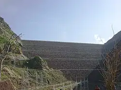 Tem um núcleo central de betão armado formando uma barreira impermeável dentro de uma construção de 304 m de altura de rocha e terra de preenchimento. O volume do montículo é de 54 milhões de metros cúbicos.