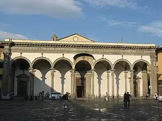 A fachada da igreja foi adicionada em 1601 pelo arquiteto Giovanni Battista Caccini, uma imitação da fachada de Filippo Brunelleschi para o Hospital dos Inocentes (Ospedale degli Innocenti), que ocupa o lado leste da praça.