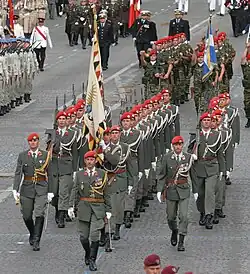 ![]() Destacamento do Batalhão de Guarda austríaco durante o desfile de 14 de julho de 2007, nos Champs-Élysées, em Paris. | |