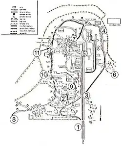 O entreposto consistia de dezenas de bunkers construídos ao longo dos três sistemas principais de trincheira ao redor da colina, com posições de artilharia e meltralhadoras fortificadas cobrindo cada trincheira. Os alojamentos para os defensores (Jordânia) da colina, estavam em um grande bunker subterrâneo. Durante a Guerra dos Seis Dias, o entreposto foi defendido por uma companhia reforçada Jordaniana, contando com 150 soldados do Regimento El-Hussein (número 2).[3]
