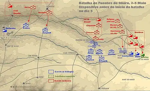 - Com 28 companhias retiradas da 1.ª e 3.ª Divisões, ocupou a povoação de Fuentes de Oñoro;