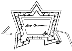 Forte Griswold em Groton Heights, do outro lado do Rio Thames em relação a New London. | |||