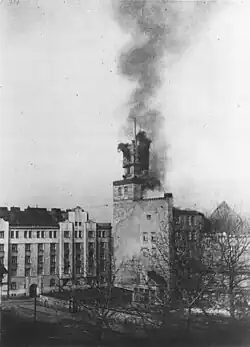Às 13h30, os alemães chegaram ao distrito de Töölö. Como os Vermelhos conseguiram deter as tropas invasoras, o coronel alemão Hans von Tschirschky und Bögendorff formou duas unidades. Uma unidade continuou o ataque ao longo do Mannerheimintie enquanto a outra fugiu pelo distrito de Hietalahti em direção à parte sul da cidade. Ao mesmo tempo, um terceiro esquadrão estava entrando na cidade vindo de Pasila pela ferrovia. Perto do Museu Nacional, os alemães foram atingidos por fogo pesado por volta das 16h. O tiroteio veio da guarnição de Turku, que ficava perto do atual edifício Lasipalatsi. Os alemães agora tinham que fugir da guarnição de Turku pelo oeste, pela rua Fredrikinkatu, no distrito de Kamppi. A guarnição foi posteriormente tomada pelo fogo do edifício. [10]