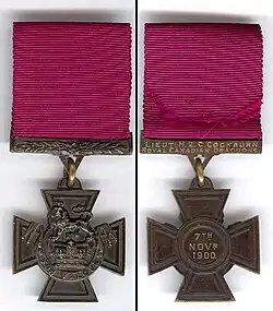 - ↑ a b c d e f g h i j International, Radio Canada (7 de novembro de 2016). «History: Nov.7, 1900 – 3 Victoria Crosses for Canada». RCI | English (em inglês). Consultado em 4 de novembro de 2023