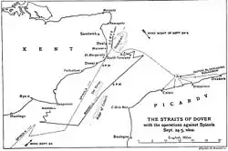Mansell, com três navios (o Hope de 30 canhões junto com o Victory de 42 canhões e o Answer), partiu e patrulhou perto do cabo Dungeness. O capitão da bandeira de Mansell apresentou a estratégia de como enfrentar Spinola. Ele previu que Spinola tentaria navegar perto da costa inglesa. Seguindo esse palpite, Mansell colocou cada navio a uma boa distância dos demais, usando flyboats para estabelecer um bom sistema de comunicação entre eles e a frota holandesa na costa flamenga.[7] No dia 3, Mansell logo foi acompanhado por dois flyboats holandeses, o Samson e o Moon, para melhorar a comunicação. Agora Spinola estava efetivamente navegando para uma armadilha.[10]