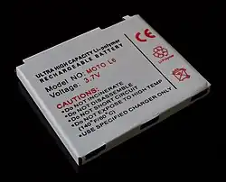 Bateria LiPO ou Polímero de Lítio é uma bateria em que contém em seus eletrólitos de sais de lítio retidos em um polímero sólido como o óxido de polietileno em vez de solventes tornando-as adaptáveis a diferentes formatos e permitindo altas taxas de descargas elétricas.[1]