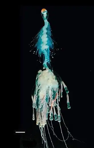 - ↑ a b c Pacific, Aquarium of the. «Pelagic Siphonophore». www.aquariumofpacific.org (em inglês). Consultado em 10 de março de 2020. Cópia arquivada em 18 de outubro de 2019