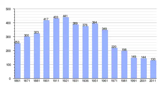 | Variação demográfica do município entre 1861 e 2011[3] |