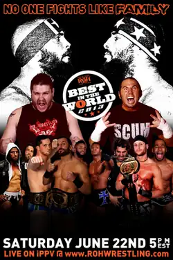 - ↑ Richard Trionfo (22 de junho de 2013). «Ring of Honor Best in the World iPPV Report: Briscoes battle for the World title; elimination matches are eliminated; Steen takes on SCUM; Ciampa/Elgin; and more». PWInsider. Consultado em 22 de junho de 2013