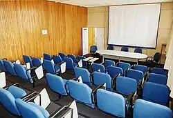 O anfiteatro é de uso restrito para palestras, cursos, aulas, seminários, etc. Voltadas à atividades acadêmicas dos cursos da Faculdade.[1]