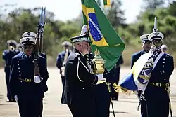 ![]() ![]() Acima: Desfile Cívico-Militar por ocasião das Comemorações do Bicentenário, abaixo: logomarca do governo brasileiro em formato do punho de D. Pedro I com a espada. | |