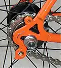 - Dado que uma única roda dentada traseira ocupa menos espaço do que as sete ou dez presentes nos típicos cassetes de múltiplas marchas, o conjunto aro-raios da roda traseira pode ser construído com bastante simetria, isto é, com pouco ou nenhum "chapéu" (também chamado "guarda-chuva".Dish, em inglês), o que torna a roda inerentemente mais robusta;