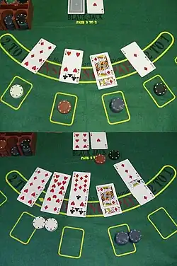 Blackjack ou vinte-e-um[1] é um jogo praticado com cartas em casinos e que pode ser jogado com 1 a 8 baralhos de 52 cartas, em que o objetivo é ter mais pontos do que o adversário, mas sem ultrapassar os 21 (caso em que se perde). O dealer só pode pedir até um máximo de 5 cartas ou até chegar ao número 17.