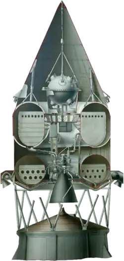 A configuração básica do míssil R-7, com pequenas adaptações, foi capaz de colocar satélites em órbita. No entanto, para atingir a velocidade de escape, a configuração básica de dois estágios, precisou ser incrementada com esse terceiro estágio e um sistema de controle de direção e atitude em voo, mais sofisticado.
