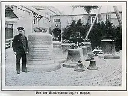 Sinos de igreja para reciclagem em Rostock em 1917.