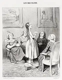 William Hazlitt disse, "O bluestocking é o personagem mais odioso da sociedade... funde-se onde quer que a coloquem, como a gema de um ovo, até o fundo, e leva a sujeira com ela."[7]