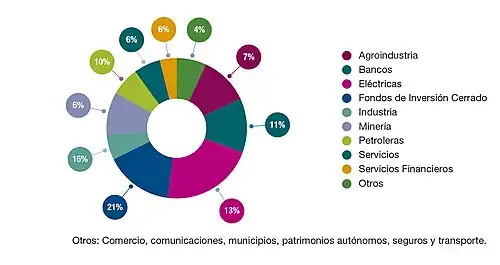 Na Bolsa de Valores Boliviana são negociadas ações dos seguintes setores: