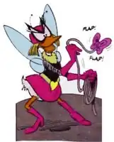 Sátira à Batgirl, presente nas histórias do Batman, já que o próprio Morcego Vermelho é uma sátira ao Homem-morcego.