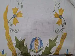Alguns dos elementos destes bordados são o lar e a Árvore da Vida (Bíblia), os desposados (representados por pássaros juntos), os cravos e rosas representando o homem e a mulher, respectivamente, os lírios, a Virtude, corações para o Amor, gavinhas para a Amizade, entre outros.