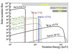 Em 2007 foi anunciada a primeira detecção direta de neutrinos com energia de 0,862 MeV oriundos do decaimento radioativo do 7Be, um isótopo do berílio produzido no interior do Sol.[4][5]