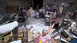 ![]() Michael derruba caixas e espalha isopor pelo depósito | |||
