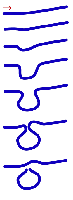 Quando um rio atinge uma área de planície extensa, muitas vezes no seu curso final para o mar ou para um lago, descreve numerosos meandros. Na proximidade de uma curva do rio, os sedimentos são depositados na margem convexa (a de menor raio). De forma oposta, tanto a erosão lateral quanto o corte inferior ocorrem na margem côncava (a de maior raio). A deposição contínua na margem convexa e a erosão da margem côncava causam a formação de um meandro muito pronunciado, à medida que as duas margens côncavas se aproximam. O estreito "pescoço" de terra entre as duas margens côncavas próximas finalmente acaba por ser cortado, quer pela erosão lateral de ambas as margens côncavas quer pelas fortes correntes de uma inundação. Quando isso acontece, é criado um novo canal fluvial quase em linha reta, que é aprofundado à medida que a água flui mais rapidamente porque o caminho é menor e a curva do meandro é abandonada. Quando a deposição finalmente sela o atalho do canal do rio, o braço morto é formado. Este processo ocorre ao longo do tempo, com uma duração diferente, de vários anos a várias décadas e pode, por vezes, ser essencialmente estático.