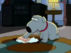 ![]() Brian Griffin limpando o tapete após um acidente. | |||