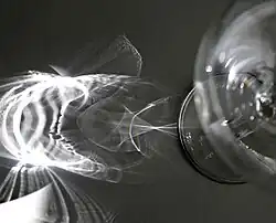 Em óptica, uma cáustica é a superfície dos raios de luz refletidos ou refratados por uma superfície curva ao objeto, ou a projeção dessa superfície de raios em outra superfície. O termo cáustica pode também referir-se à curva na qual os raios de luz são tangentes, determinando uma fronteira da superfície de raios como uma curva de luz concentrada. Portanto na imagem da direita, as cáusticas podem ser os traços de luz ou suas bordas brilhantes. Estas formas normalmente têm pontos singulares cúspide.