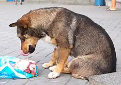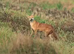 Esses canídeos se alimentam de frutas e outras plantas como parte de dieta onívora, além de restos de alimentos que são encontrados em lixos, como fazem os cães de rua, ursos, gatos e guaxinins, mas também podem caçar carneiros, gatos, doninhas, camelos, peixes, lhamas, bodes e roedores (tanto domésticos quanto selvagens).