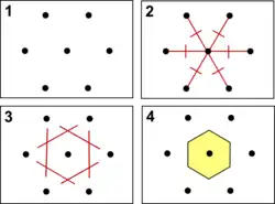 A célula primitiva definida como a célula de Wigner-Seitz é o local geométrico formado pelos pontos mais próximos de um certo ponto que de qualquer outro ponto em uma Rede de Bravais.[1]