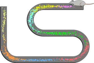 Em roedores, a memória espacial está vinculada ao hipocampo. Utilizando eletrodos na região do hipocampo denominada giro denteado, é possível detectar neurônios que respondem à posição do animal no ambiente. Esses neurônios que referenciam um lugar são chamados "células de lugar".[9] Estudos com ratos demonstraram que as células de local tendem a disparar subitamente quando o rato entra em um novo ambiente, porém fora do seu campo de disparo tais células tendem a ser relativamente inativas.[10] Foi mostrado que células de lugar têm a capacidade de, subitamente, alterar seu padrão de disparo, fenômeno conhecido como "remapeação" e mesmo que células de local mudem de acordo com o ambiente externo, elas são estabilizadas por atratores dinâmicos que "permitem ao sistema resistir a pequenas mudanças da entrada sensorial e responder coletivamente e coerentemente a maiores mudanças".[11] Embora as células sejam parte de um sistema cortical não-sensorial, seu padrão de disparo é fortemente correlacionado com a entrada sensorial. Células de lugar disparam quando o animal está localizado em partes do ambiente chamadas de campos locais.[12] Estes circuitos podem ter implicações importantes para a memória, uma vez que eles fornecem o contexto espacial de memórias e experiências passadas.[12] Como muitas outras partes do cérebro, o circuito das células de lugar são dinâmicos. Eles estão constantemente se ajustando e remapeando para estar de acordo com a localização atual do animal. Células de lugar não funcionam sozinhas para criar uma representação espacial; elas são parte de um circuito complexo que informa a sensibilização provocada por um local e a memória do local.[12]