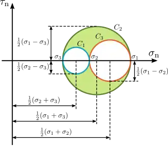 A abscissa e a ordenada de cada ponto do círculo são as magnitudes da tensão normal e da tensão cisalhante atuando sobre um sistema de coordenadas rotacionado. Em outras palavras, o círculo é o locus dos pontos que representam o estado de tensão sobre planos individuais em todas as suas orientações, onde os eixos representam os eixos principais dos elementos de tensão.