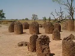 As pedras são grandes colunas de laterite com cerca de dois metros de altura e um peso de sete toneladas cada, foram cortadas com instrumentos de ferro e cuidadosamente esculpidas em pilares quase idênticos de secção circular ou poligonal. Cada círculo é formado por oito a 14 pilares, dispostos num círculo com 4-6 metros de diâmetro e encontra-se localizado ao lado de um túmulo.