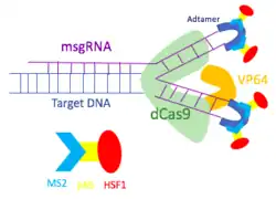 Para superar a limitação do sistema de ativação do gene dCas9-VP64, o sistema dCas9-SAM foi desenvolvido para incorporar múltiplos fatores transcricionais. Assim, o sistema dCas9-SAM pode ainda ser empregado para ativar genes latentes, desenvolver terapias gênicas e descobrir novos genes.[7][8]