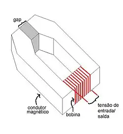 Sua construção consiste de um solenoide (bobina) enrolado sobre um anel, ou forma semelhante. O anel é feito de um material de alta permeabilidade magnética (condutor magnético), exceto por um pequeno vão (gap), na extremidade oposta ao solenoide, propositadamente construído com material de baixa permeabilidade magnética.