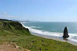 Cabo Blanco - vista para norte: Gulf Rock, Castle Rock e Floras Lake State Park