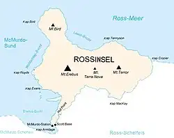 No cabo, está o vulcão monte Terror, extinto, que se eleva a 3 262 m,[1] e a beira da plataforma de gelo Ross (anteriormente conhecida como Barreira ou Grande Barreira de gelo) prolonga-se para este.