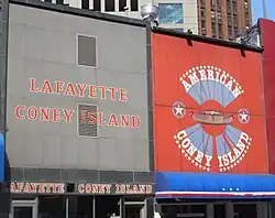 Os restaurantes de chili dog mais influentes em Michigan são o American Coney Island e o Lafayette Coney Island, localizados lado a lado no centro de Detroit.[10] O restaurante American Coney Island foi fundado entre 1914 e 1917 pelo imigrante grego Constantine "Gust" Keros.[11] Gust trouxe seu irmão da Grécia e o ajudou a abrir o restaurante Lafayette Coney Island ao lado.[10] Há uma rivalidade acirrada entre os dois restaurantes.[11][10]