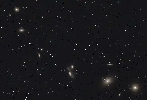Pelo menos sete galáxias na cadeia parecem se mover de forma coerente, embora outras pareçam estar sobrepostas por acaso.[1].[1]