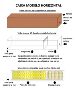 - ↑ «CAIXAS PARA ABELHAS NATIVAS - MEDIDAS». 23 de janeiro de 2020. Consultado em 1 de novembro de 2020