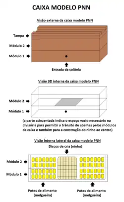 - ↑ «Meliponario Pivoto: Caixa PNN ( modelo simplificado )». Meliponario Pivoto. 25 de março de 2014. Consultado em 14 de agosto de 2020