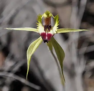 - ↑ a b c David L. Jones (2006). Arachnorchis in Native Orchids of Australia:50-97. Reed Natural History Australia (Publ.) ISBN 9781877069123