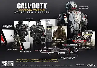 Foram reveladas três edições de coleccionador para Advance Warfare: "Atlas Pro Edition", "Atlas Limited Edition" e a "Atlas Digital Pro Edition". O mapa "Atlas Gorge" está incluído nas três e é uma reinvenção do mapa "Pipeline" de Call of Duty 4: Modern Warfare. O jogador também recebe o pacote ‘Atlas Digital Content Pack’ com as três edições, que inclui duas armas, um Exoesqueleto Atlas, capacete, uma carta de jogador, cinco "supply drops", e um token para dar uma melhoria ao Exoesqueleto durante a campanha. As duas edições físicas têm ainda um manual com arte conceptual juntamente com informação histórica e táctica, uma caixa em aço para o jogo e a banda sonora oficial composta por Harry Gregson-Williams e Audiomachine. No entanto, apenas a Digital Pro Edition e a Pro Edition têm o Passe de Época (Season Pass), que dá acesso a quatro pacotes de mapas.[29][30]
