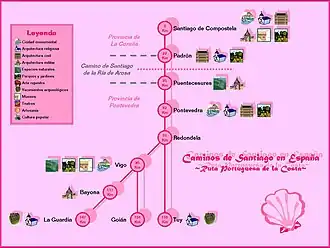 Mapa da Rota da Costa do Caminho Português de Santiago na Galiza