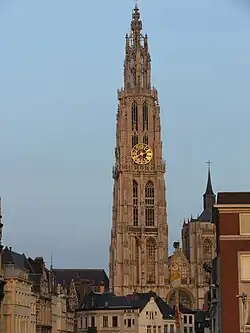 ↑UNESCO states, inappropriately in French: ID 943-016 Tour de Saint-Rombaut ; in native Dutch language this is Sint-Romboutstoren which is the main tower of the cathedral, once also used as a watchtower against fires.