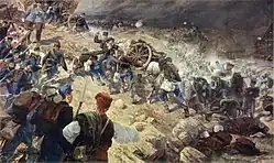 ![]() Acampamento austro-húngaro perto de Mostar, pintado por Alexander Ritter von Bensa e Adolf Obermüller | |||