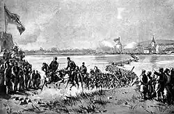 - ↑ Es entspann sich einer der denkbar gräßlichsten Kämpfe. Aus jedem Hause, aus jedem Fenster, aus jeder Tür spalte wurden die Truppen beschossen; ja selbst Weiber beteiligten sich daran. Das fast ganz am westlichen Stadteingange gelegene Militärspital, voll von kranken und verwundeten Insurgenten. . .