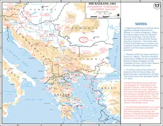 A Campanha do Balcãs da Segunda Guerra Mundial começou com a invasão italiana da Grécia em 28 de outubro de 1940. Nos primeiros meses de 1941, a ofensiva italiana parou recuando para a Albânia. A Alemanha procurou ajudar a Itália enviando tropas para a Roménia e Bulgária e atacando a Grécia a partir do leste, enquanto as tropas britânicas desembarcavam e aviões fortaleciam as defesas gregas. O golpe de estado na Iugoslávia em 1941 em 27 de março forçou Hitler a conquistar aquele país.