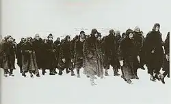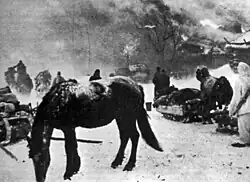 Durante a última fase da retirada, houve períodos de desespero, caos e colapso moral. Incidentes graves eclodiram entre as tropas alemãs e italianas, aparentemente devido ao comportamento desdenhoso e pouco amigável dos soldados alemães e a violentas disputas sobre o direito de usar os poucos veículos motorizados disponíveis; na realidade, não faltaram episódios de vingança entre as tropas italianas, inclusive com o uso de armas.[125][126] A coluna exausta liderada pela "Tridentina", contudo, ainda não havia saído do cerco, e no dia 25 teve primeiro de enfrentar um ataque de partidários e forças regulares russas em Nikitovka, que foi repelido pelo 5º Batalhão Alpino e pela artilharia alemã e italiana remanescente, e posteriormente, ao amanhecer do dia 26 de janeiro, teve que repelir ataques pesados perto de Arnautowo com os batalhões "Tirano" e "Val Camonica".[127] Uma vez superado este último cerco, toda a "Tridentina" foi mobilizada para romper a última barreira soviética em Nikolaevka: em 26 de janeiro de 1943, as tropas alpinas e os canhões de assalto alemães restantes lançaram-se com suas últimas energias contra o obstáculo e, ao final da sangrenta batalha de Nikolayevka, finalmente conseguiram romper o cerco e alcançar a estrada em direção a Šebekino . Sua marcha, no entanto, não terminou aqui: o comando da divisão rapidamente reconstituiu as unidades e ordenou a retomada da marcha ao amanhecer do dia 27, que só terminou em 31 de janeiro, quando as tropas alpinas chegaram a Triskoje não sem novas perdas e grandes dificuldades.[128] Um destino pior acometeu as duas divisões "Cuneense", "Vicenza" e os sobreviventes do "Julia", que foram definitivamente encurralados e forçados a se render em 28 de janeiro em Valujki por unidades do 7º Corpo de Cavalaria Soviético, que haviam chegado àquela localidade desde o dia 19, e às quais eles foram incapazes e impossibilitados de oferecer resistência efetiva.[129][130][131][132][N 6]